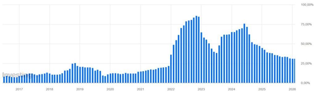 Инфляция в Турции, г/г. Источник изображения: investing.com