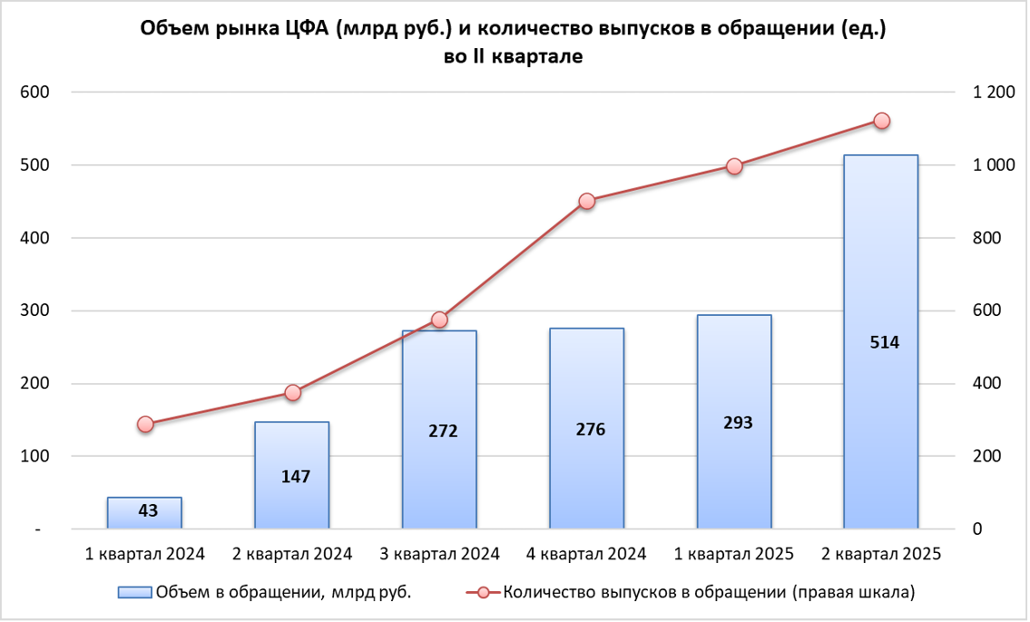 Регулирующий отрасль закон появился в 2020 году, а первые ЦФА были выпущены в 2022-м. С тех пор рынок развился до 514 млрд руб. выпущенных активов и 561 тыс. зарегистрированных пользователей.