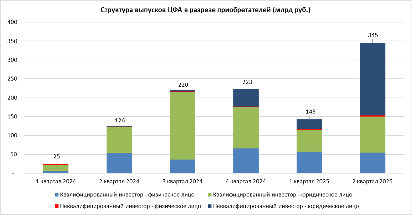 Во втором квартале текущего года впервые основными приобретателями выступили юридические лица – неквалифицированные инвесторы. Это говорит о росте востребованности ЦФА у широкого круга компаний.